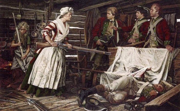 Nancy managed to sneak two of the muskets into a space in the wall but by the time she got to the other muskets she had been caught by the British. One of the British soldiers ran after her but she was an expert marksman and dropped him to the floor another British soldier followed and she shot and injured him. The rest of the soldiers remained from provoking Nancy. Maybe it was the fact the she was 6 feet tall and red headed or maybe it was the fact that she was armed and they weren’t. Either way Nancy kept them contained while she waited on her husband and his friends to arrive.